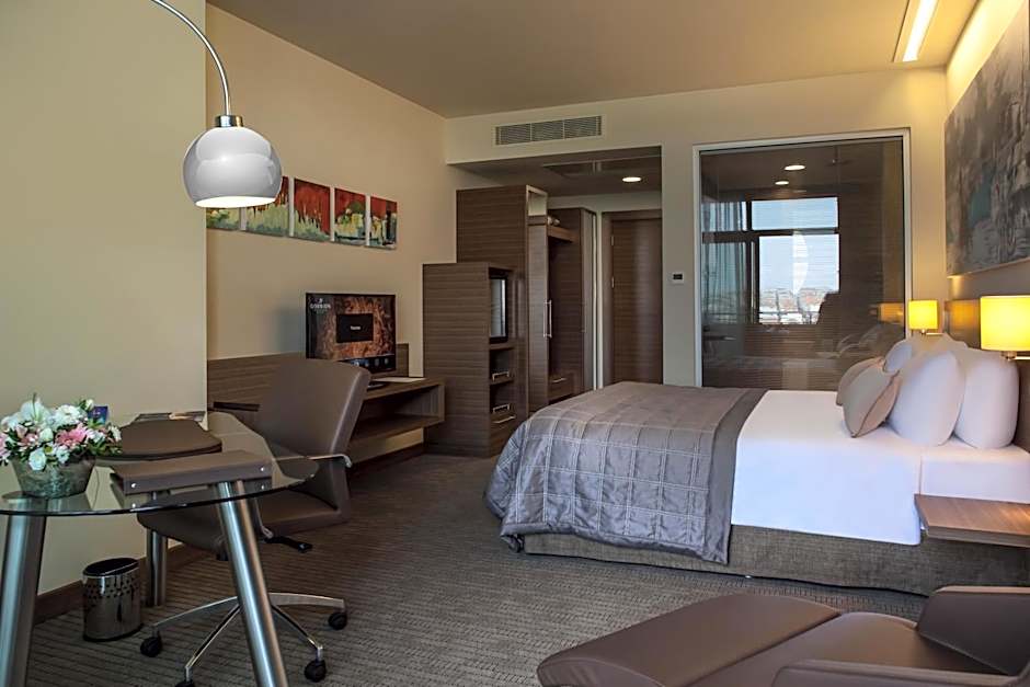 Featuring floor-to-ceiling windows, this spacious room offers a city view, sofa bed, flat-screen TV, tea and coffee setup, electric kettle, ironing facilities, air conditioning, free WiFi and work desk. Private bathroom comes with rain shower and bathtub.